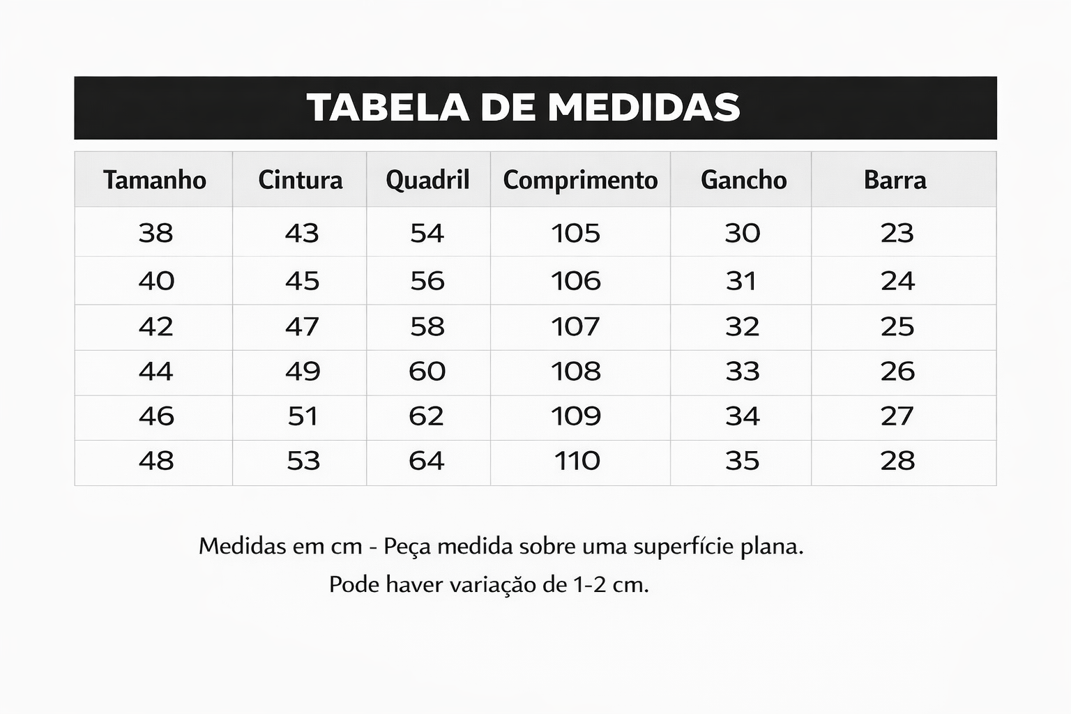 - Pode haver variação de até 3% na lavagem e no tamanho entre as peças.
